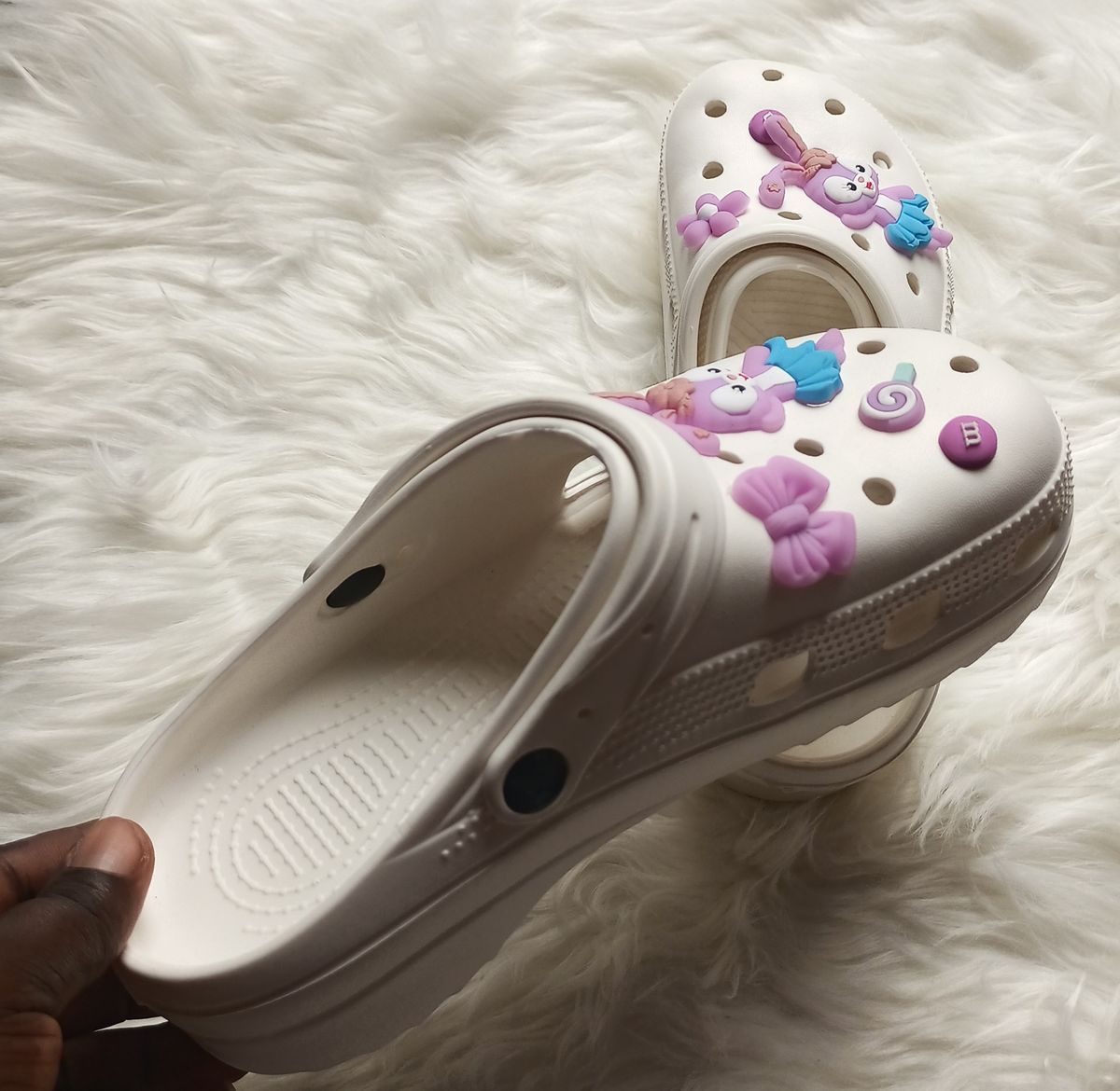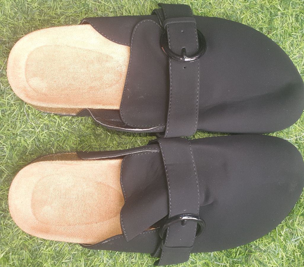 A pair of heeled mule shoes