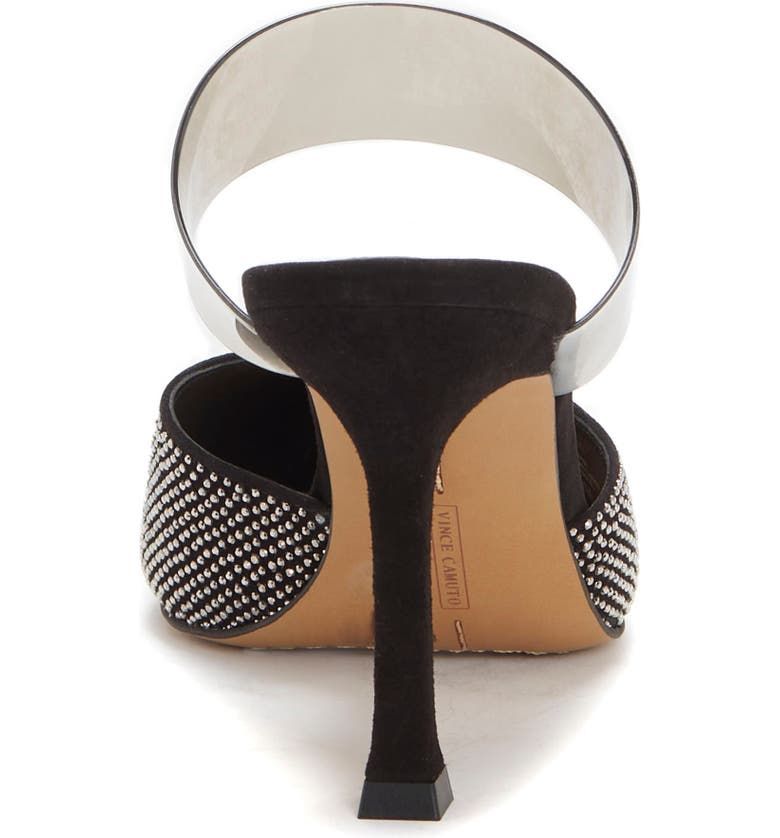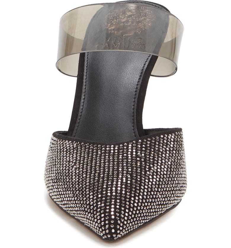A chic afternoon-to-evening shoe, the mule is styled with a point toe, curvy topline and squared stiletto heel. The rhinestone embellished mule throws a little sparkle in your step.The padded footbed makes it even easier to slip into fun