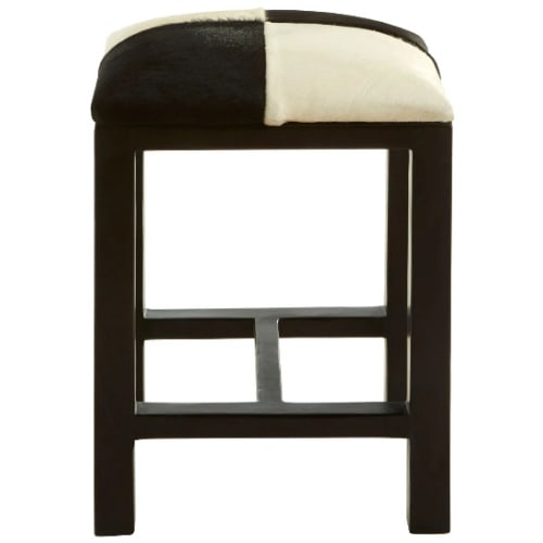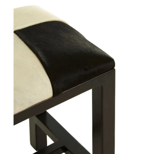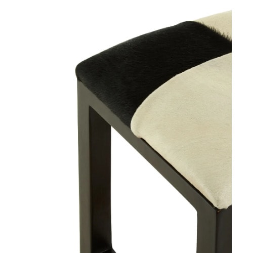 Small but perfectly formed, the Kendari stool is an elegantly monochromatic accent piece.Its frame is crafted from sustainable teak wood and has a sleek black finish that give the stool a contemporary look. Simple in design, it features perfectly straight legs and a single strut design at the base. The plump seat is upholstered with tactile leather, quartered into black and white sections.