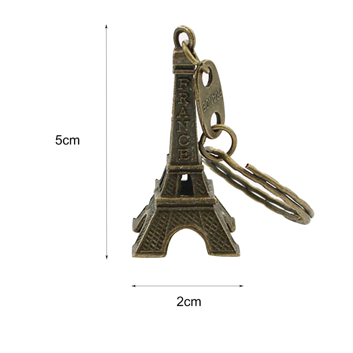 The keychain total length is 9.5cm. Besides, the height of Eiffel Tower pendant is 5cm, and the width is 2 cm.