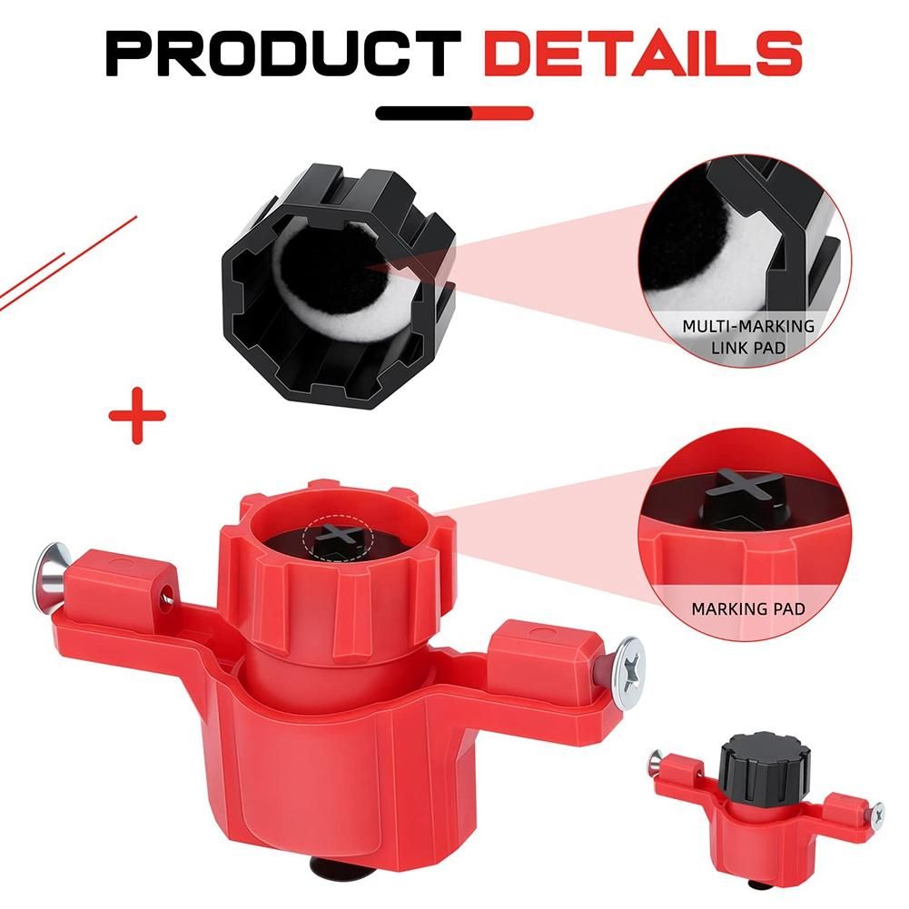 RECESSED, SELF-INKING MARKER - When the tools are mounted on the object, ink is automatically transferred from the ink reservoir in the cap to the marking pad. The caps store ample drying-resistant ink for repeated use. The recessed marking pad keeps the surface clean while positioning the object, until you are ready to mark the location.