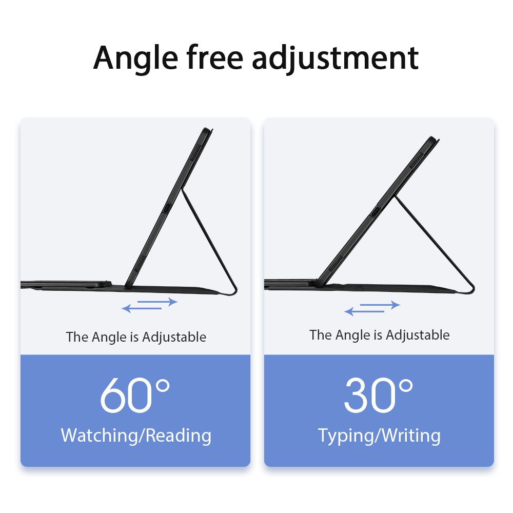 The removable keyboard is used as part of the stand for the tablet. Move the keyboard more forward or backward along the cover of the case, you can adjust the angle of the tablet to your preference