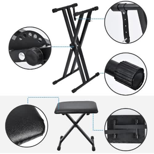 Folds up for easy transport. Perfect for use with any portable keyboard or synthesizer. This product is designed by musicians for the active player, and provide the best in affordability and quality.