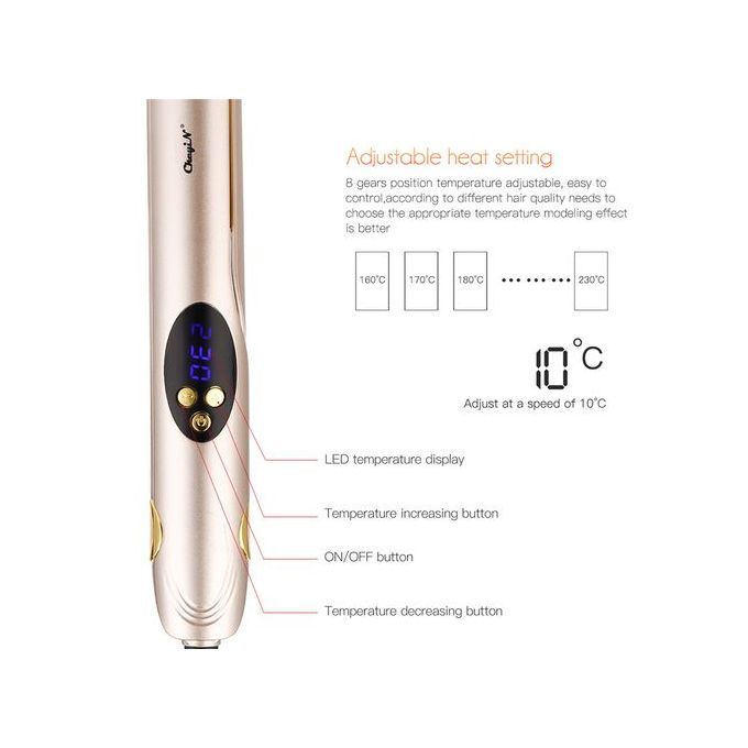 Wide-Range Temperature Adjusted. 160℃-230℃ temperature adjustable, every 10℃ per gear, you may adjust temperature according to your hair condition .
