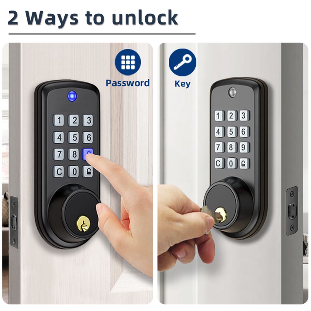 Features:Keyless Entry & Traditional Keys: Smart lock offers keyless entry options by passwords which can program 10 user codes for your family members and friends, also support entry with traditional keys.
