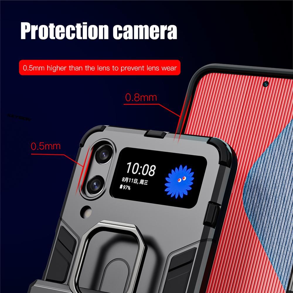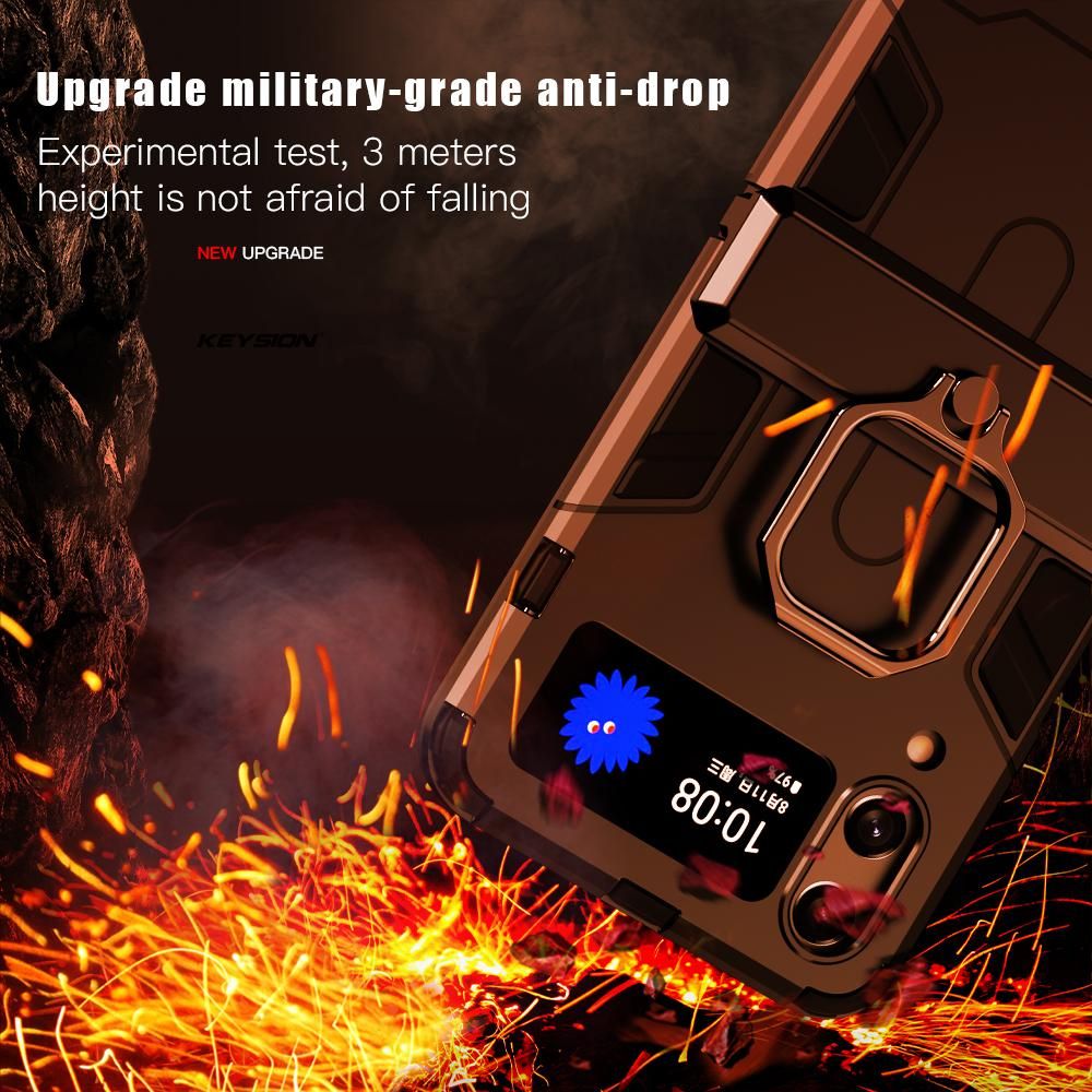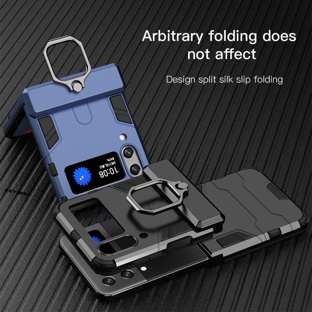 KEYSION Shockproof Armor Case For Samsung Galaxy Z Flip 4 5G Ring Stand Phone Back Cover for Galaxy Z Filp 4 5G