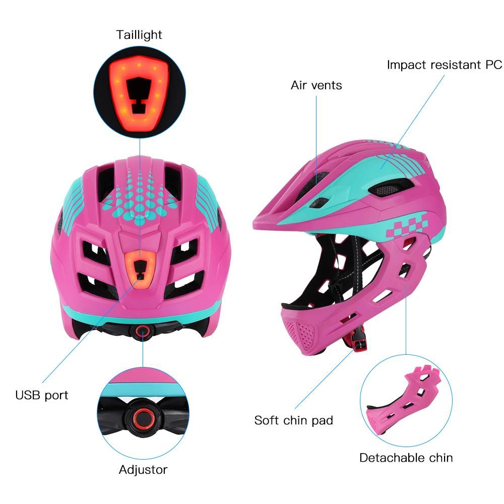 Buy Kid Bike Full Face Helmet Children Safety Riding Skateboard Rollerblading Helmet Sports Head Guard with Taillight and Detachable Chin in Nigeria
