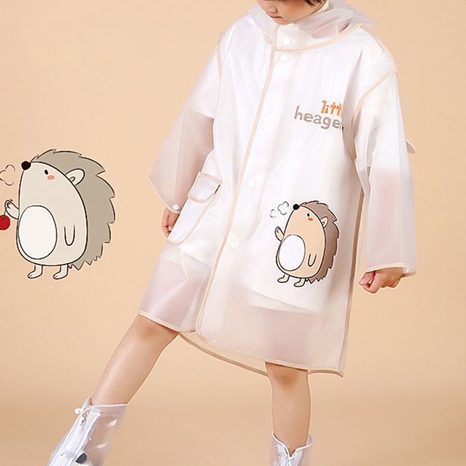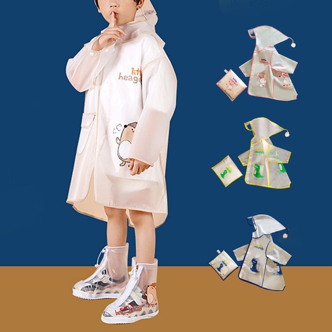 The kids raincoat is made of premium EVA, which is eco-friendly and durable.