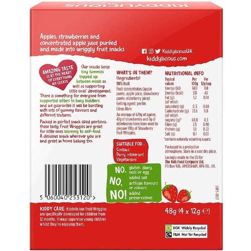 Buy Kiddylicious Strawberry Fruit Wriggles - 4 Yummy Bags - 4 X 12g in Nigeria