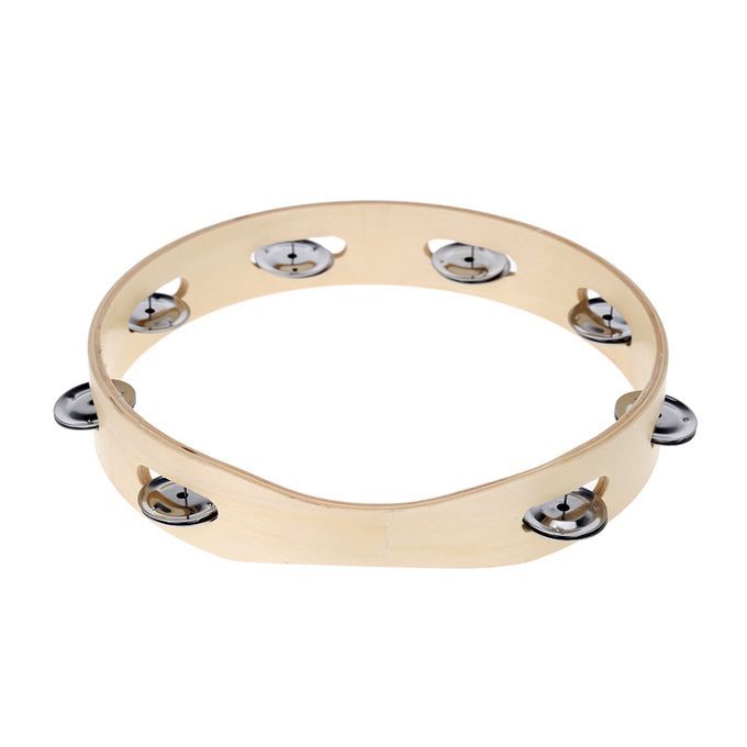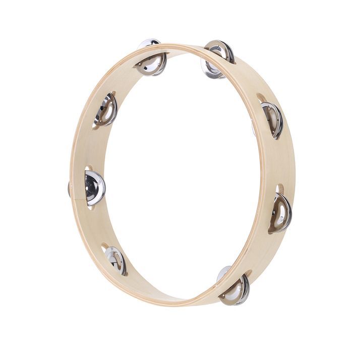 Kids 10" Hand Held Wood Headless Tambourine Bell With Metal