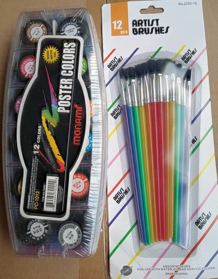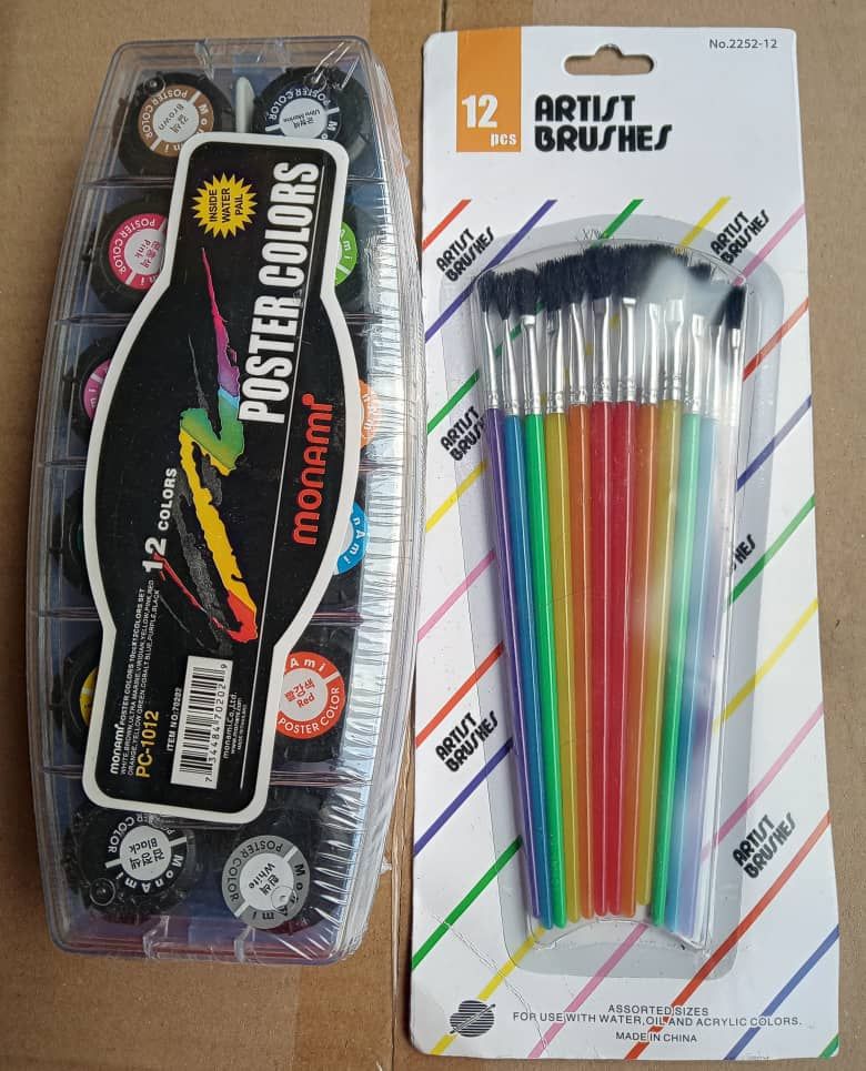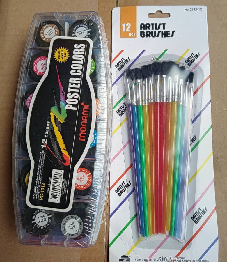 - Kids 12 Water Poster Colours +12 Artists Brushes+1 Free Drawing Book