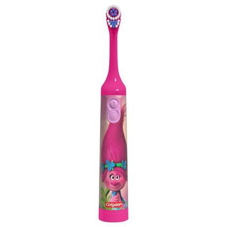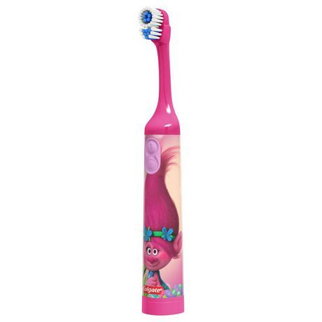 encourage kids to take care of their teeth. Great clean made fun. Your little one will look forward to brushing more often with the Colgate Kids Trolls Battery Powered Toothbrushes. The item is sure to make cleaning those pearly whites more fun. Its unique design features a small, vibrating head with extra-soft bristles and a slim handle that's easy for small hands to hold. This kids battery powered toothbrush lies flat to allow children to easily apply toothpaste. The item is available in different designs to encourage kids to take care of their teeth. At Colgate, we make products that promote healthy smiles. Not only because having a healthy smile is important to your overall health, but because when you have a healthy smile, you actually smile more - and that's a powerful thing. Smiles are the simplest form of optimism, something we need now more than ever. That's why we're championing optimism - we are committed to creating a healthier planet and working every day to create healthy smiles for all.