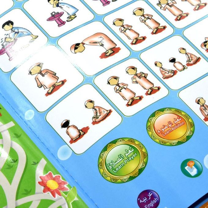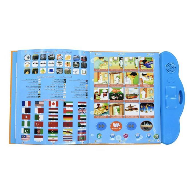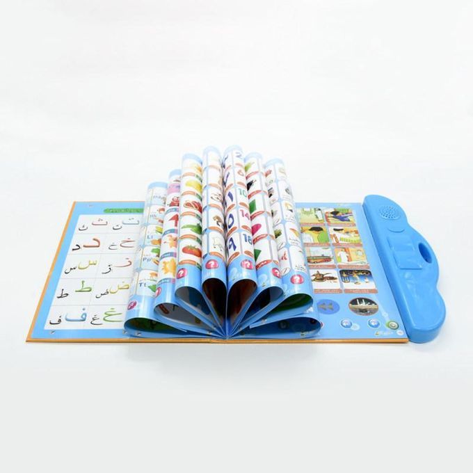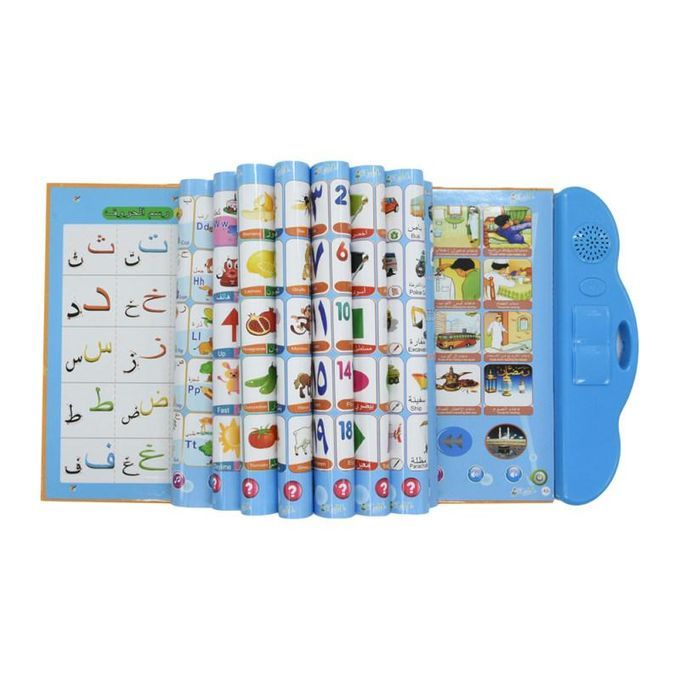It is a bilingual e-book with both Arabic and English. It will deliver a sound when you click on the pattern with the stylus pen.