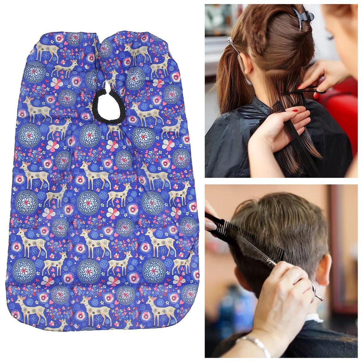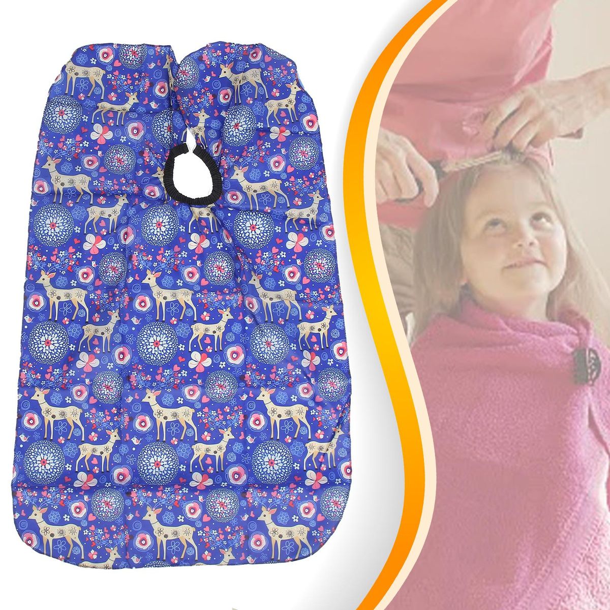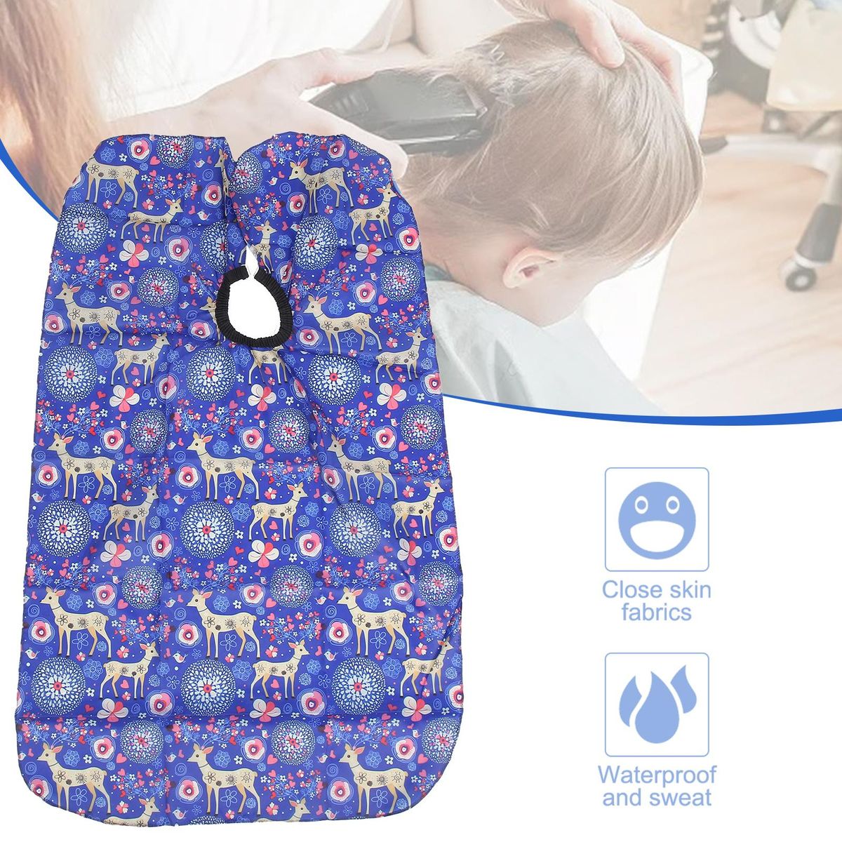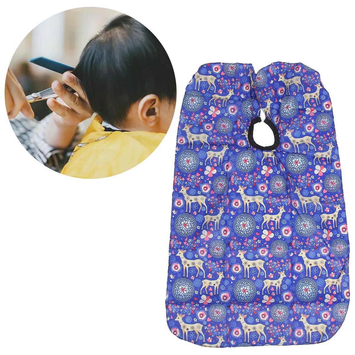 Purpose: Keep hair off of kids' clothes during haircuts, protect clothes from contamination during hair dyeing, and cover cut hair during haircut to keep it clean.