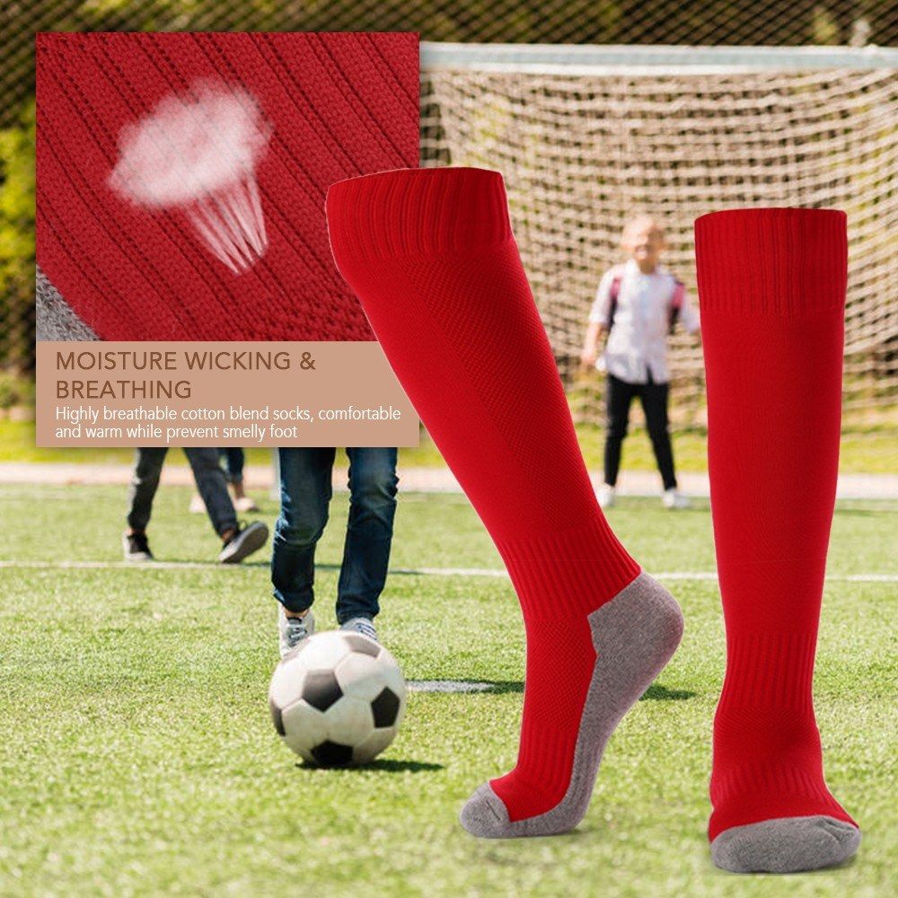 A breathing and anti-skid socks for boys and girls age 8-14 when doing vigorous sports like playing soccer or football.
