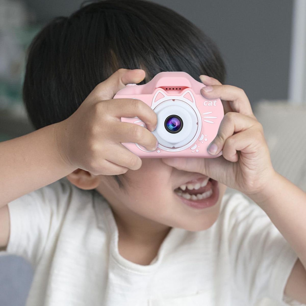 Cute Cartoon Kids Camera : 2.0-inch IPS HD display, High resolution, high color fidelity.Let kids be a little director of his own life and record the happy moment. Great for developing children's creativity and imagination.1080P HD Video Recording : Equipped with auto focus, 2400W pixels and 1080P Video, helps boys and girls catch the wonderful joy moments in their daily life.WiFi Connection: Connect with the mobile phone APP through the camera's WIFI, and download photos more easily, and share the photos to friends at any time. Built-in 2'' 5'' 10 '' 3 timing modes and multiple cartoon head stickers, a variety of head stickers, a variety of styles, free to switch to make the photo more fun and fun.USB Rechargeable: Built-in USB rechargeable lithium battery. Battery capacity is 750 mAh, which can use about 3 hours after full charging. Cute compact size makes it convenient to carry everywhere by kids. Package included a durable lanyard and Festive New Year Theme Sticker.Perfect Children Toy Gifts: Durable and high quality material can protect the camera from scratches. The beautiful camera is a great toy gift for kids on New Year, birthday, Christmas, festival, holiday ect. Children will love this cute camera.