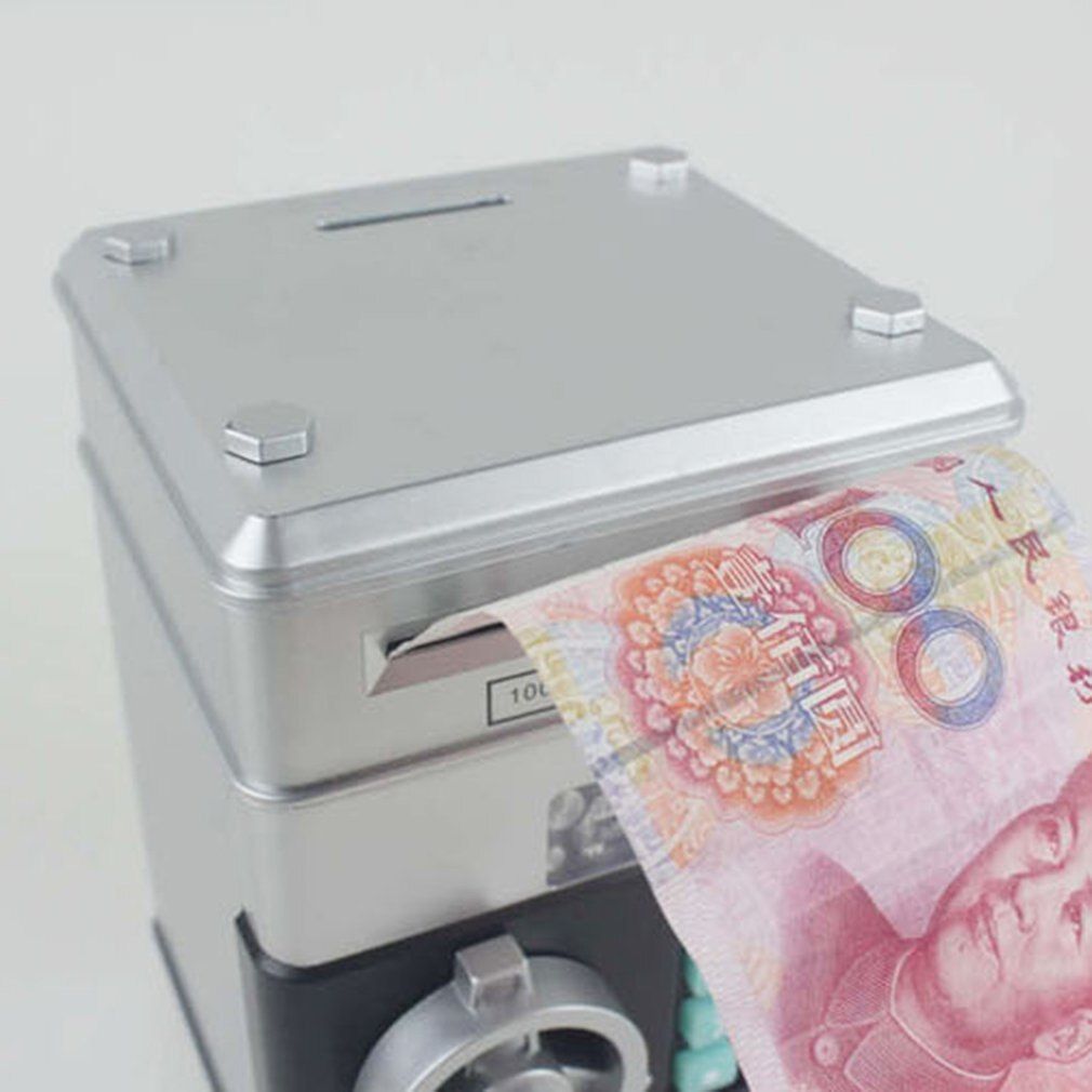 Upgrades Music Money Safe Bank- This is the upgrades piggy bank that with lovely music when it intake your money, you put more money into his"mouth", he will sing songs longer. Automatic Paper Money Scroll- When the banknote close to the cash inlets, it can automatically absorb and at the same time will automatically play music. (But it doesn't work if the paper is too old or too soft)You can store cash, coins and other private small items.The coins slot at the top lets you use the safe as a piggy bank. Paword piggy bank- The default paword is 0000 ,you can change to another 4 digits paword. If you forget the paword, just take out the batteries and restart, the paword returns to 0000. Enter the correct paword then the light turns green, the ATM can be opened. (You CAN NOT rotate the switch if the paword is wrong) High-capacity piggy bank- Can store 600 pieces of coins or 100 pieces of paper money. interesting & funny, a must item for child or gifts, greatly help you to develop a good habit of saving money. Money box material- High quality plastic, sturdy and not break easily. Size: 13*12.5*19.5cm.