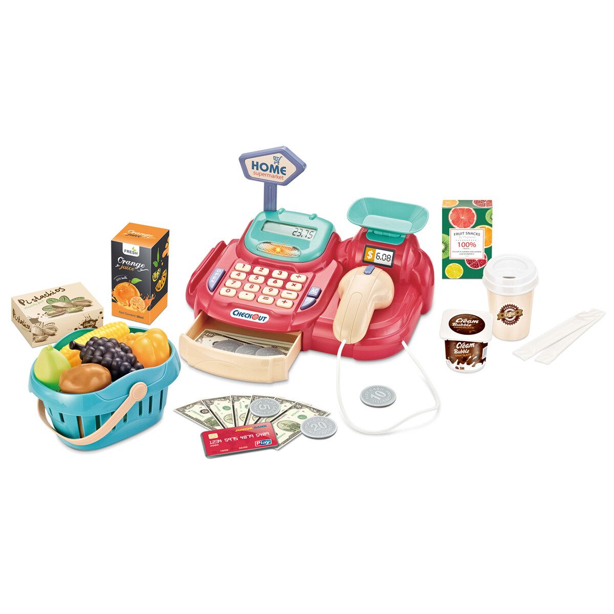 1 x casher 5 x fruits 5 x drinks 6 x paper money 6 x coins 1 x card 1 x basket 2 x coffee acc.