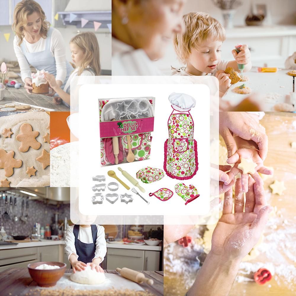 Buy Kids Cooking and Baking Set 15 PCS with Chef Hat Apron Oven Mitt Oversleeves Kitchen Utensils Children Chef Role Playset Educational Gift for Girls (Pink) in Nigeria