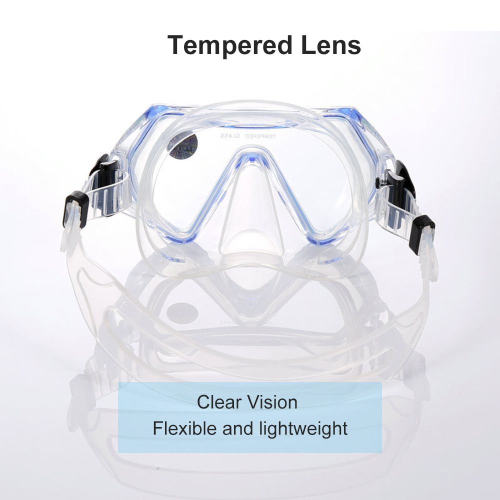 TEMPERED GLASS LENS - Our diving glasses lens are made by tempered glass, safer amp;stronger to withstand deep water pressure.