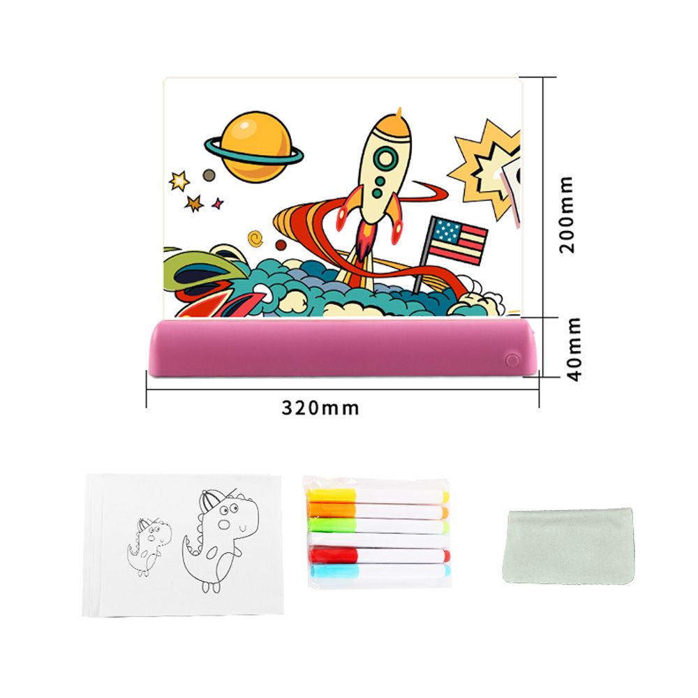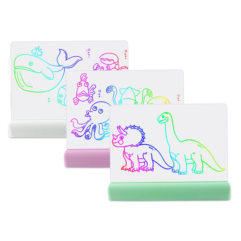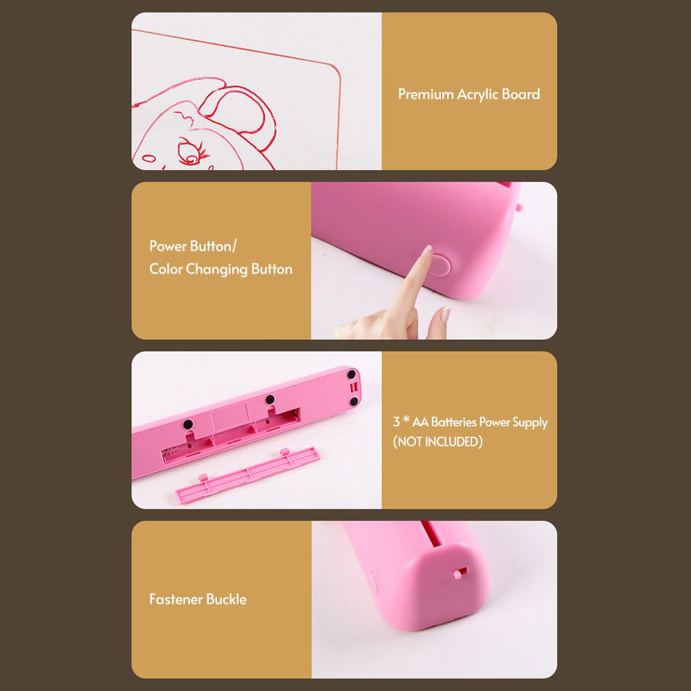 Kids light up doodle board with 11 different colorful light effects. Each time you press the button, the color of the light changes.