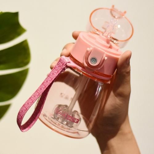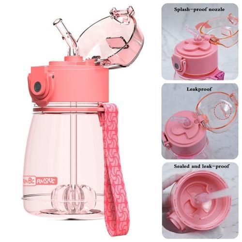 Kids Drink Cup With Straw 300ml Transparent Children Sport Water Bottle Safety PP Baby Anti Choked Sippy Feeding Learning Cups-Cups(Pink)