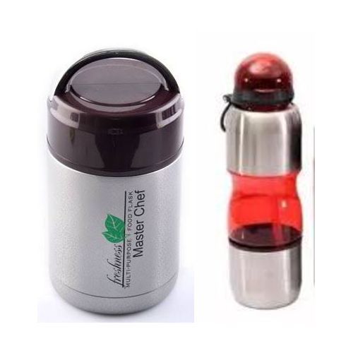 Master Chef Children Food Flask and water bottle wter bottle - 700ml Ideal for hot and cold usage Good for home, office school and travel Odour free and Eco friendly Comes with attached cup bowl Leak proof, thirst proof Preserves flavour, preserve freshnessThe Travel