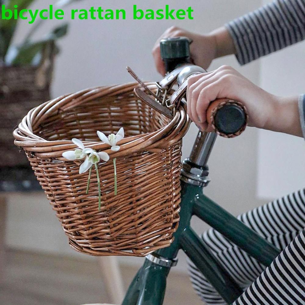 1*Kids Front Handlebar Bicycle Rattan Basket Handwov