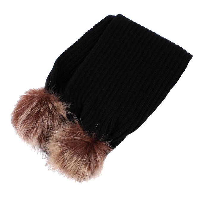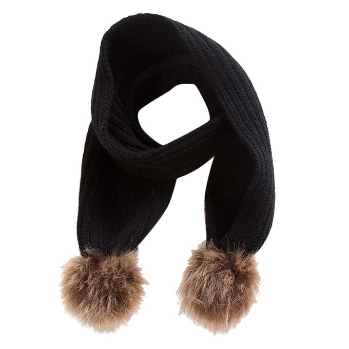 KIDS GIRLS WARM SOFT KNIT WINTER SCARF WRAP NECK WARMER FAUX POMPOM Black