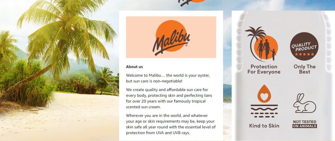 Malibu sun lotion is also vegan; and we never test on animals
