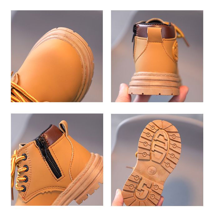 fashionable shoes is our store's philosophy. Side zipper design, easy to put on and take off, fit the baby's foot to a great extent and improve comfort. Non-slip textured sole. The inside does not grind the feet, and the upper feet are soft. The shoe compartment mesh wraps the soles of the feet lightly and softly, absorbs the sweat of the feet, is breathable, and is dry and comfortable without resting on the feet. The anti-collision toe cap protects the baby's toes well. Textured leather upper, preferably comfortable and breathable high-quality soft fabrics, soft texture, versatile colors, elegant without losing temperament, quite textured. Elastic nylon laces with bronzed metal grommets.