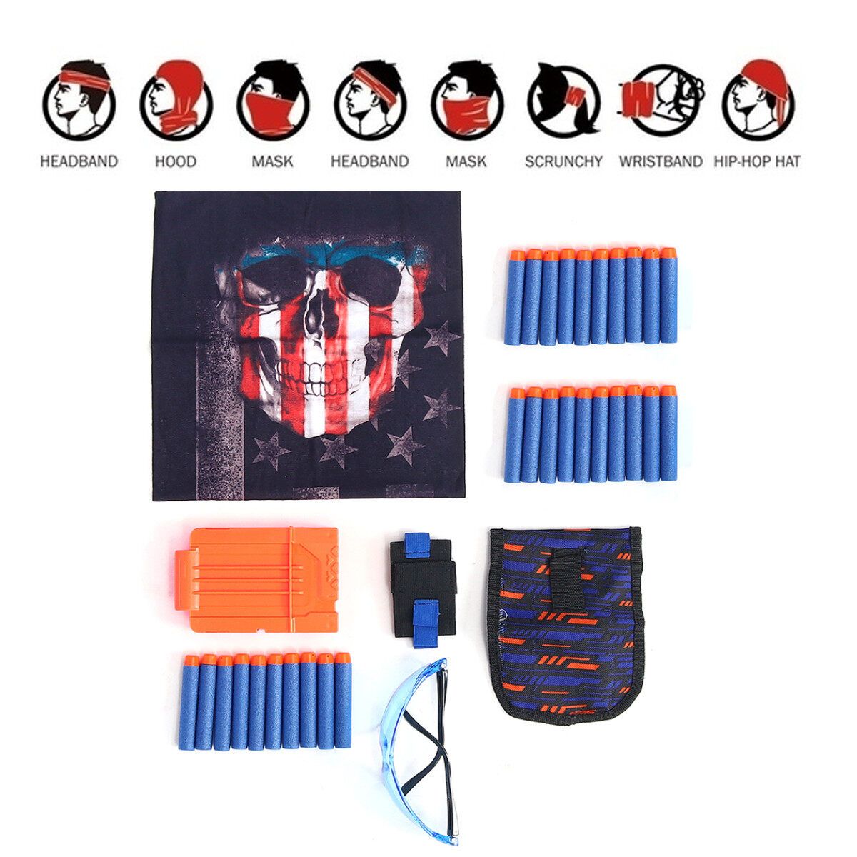 Kids Outdoor Game Holder Kit N-Strike Elite Series Game Toys Specifications: Item type: Set : black + blue + Orange Material: ABS+Plastic size: 45x39.5cm/17.55x15.40inch (1cm=10mm=0.39inch) Measurement Details in the attached picture. Package included: 1x 1x 1x Dart Pouch 1x Reload Clip 1x 1x Wrist Band 30 x refill darts OR 1x Features: -100% and high quality. - and . Made of high quality nylon, very safety and durable. create a fighting atmosphere. -Enjoy a sturdy durable and breathable and wrist band, and adjustable Buckle straps to fit for children Age 5+. -The seamless face tube make team playing stark, Keep the perspiration off your face when the kids fight for war game. - Quick Reload Clips Quick Reload Clips work with all N-Strike Elite and most N-Strike. No more worry about running out of darts during the game. -The stylish and personalized has lots of room for a lot of , lets your boys decisive advantage for wars. Enjoy outdoor games with friends! Notice -Please allow slight deviation of measurement due to manual measurement. -Due to different monitors and different light, the picture may not reflect the actual of the item. -Please consider the actual sizes in the listing as the pictures are generally enlarged to show detail. Ifyouhaveanyquestions,pleasecontactus.