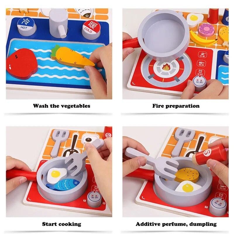 Buy Kids Pretend Chef Game Toy Wooden Cosplay Simulation Flat Kitchen Accessories Tools Children Puzzle Early Education Toys TY0417 in Nigeria