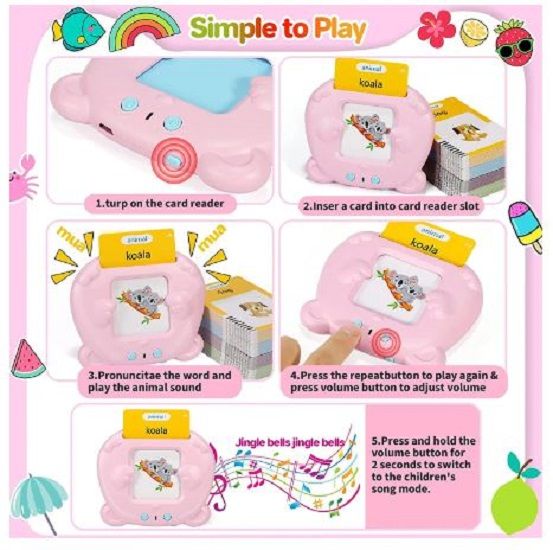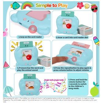 Endless Fun: 224 unique cards of animals, food, fruits, and many more keep your child busy and happy for hours on end![ Children Learning Toys ] - This speech therapy toy includes a card reader and 224 card content -112 double sided flash cards covering 12 subjects like shapes, colors, animals, daily necessities, transports, food, fruits, vegetables, costumes, nature, persons & jobs. Great learning toy for 2 -8years year olds and up to learn sight words, enhance cognitive ability, exercise hearing and build vocabulary. Great autism sensory toys for autistic children.