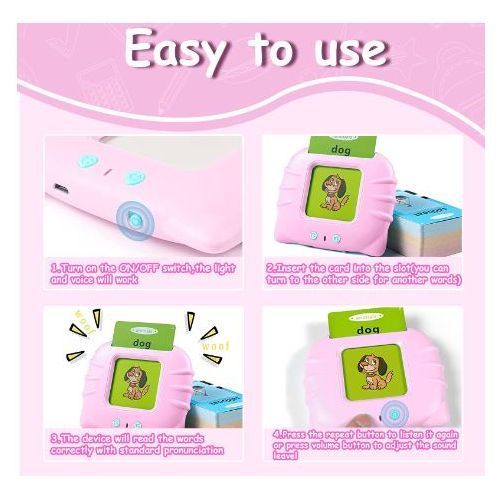 Endless Fun: unique cards of animals, food, fruits, and many more keep your child busy and happy for hours on end![ Children Learning Toys ] - This speech therapy toy includes a card reader and card content double sided flash cards covering subjects like shapes, colors, animals, daily necessities, transports, food, fruits, vegetables, costumes, nature, persons & jobs. Great learning toy and up to learn sight words, enhance cognitive ability, exercise hearing and build vocabulary. Great autism sensory toys for autistic children.