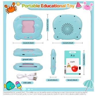 Endless Fun: 224 unique cards of animals, food, fruits, and many more keep your child busy and happy for hours on end![ Children Learning Toys ] - This speech therapy toy includes a card reader and 224 card content -112 double sided flash cards covering 12 subjects like shapes, colors, animals, daily necessities, transports, food, fruits, vegetables, costumes, nature, persons & jobs. Great learning toy for 2 -8years year olds and up to learn sight words, enhance cognitive ability, exercise hearing and build vocabulary. Great autism sensory toys for autistic children.
