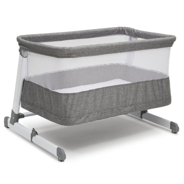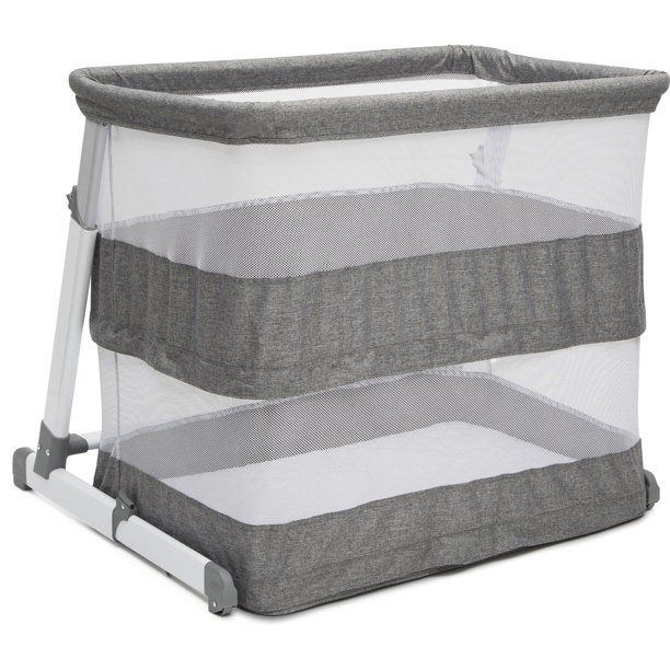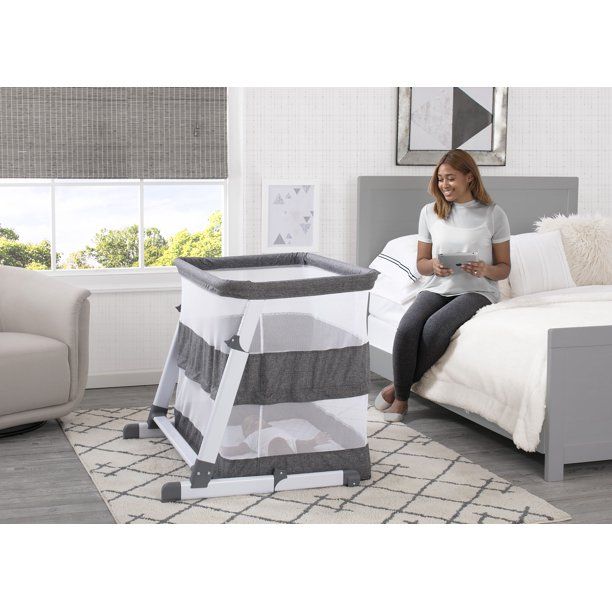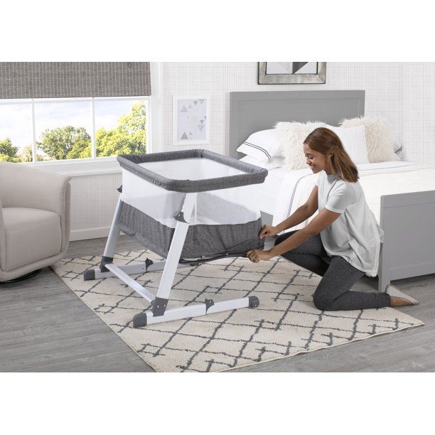 The Room2Grow Newborn Bassinet to Infant Sleeper from Simmons Kids is there for your baby as they grow. Making it extremely easy and safe to room share with your little one from birth to 12 months, this newborn bassinet and infant sleeper combo features two stages that allow you to lower the unit as your baby matures. Use the bassinet mode for newborns (up to 15 lbs.). In the bassinet stage you can easily adjust the height so your baby is close by and within reach, which makes it easier than ever to soothe or feed your little one. For infants (up to 25 lbs.) use the sleeper mode. The sleeper mode allows you to lower the unit to the floor to ensure your growing baby has the safest sleep environment while still being near by. The included mattress pad offers a firm, comfortable surface to sleep on while mesh sides provide a clear view of Baby and help air circulate. A must-have for new parents, the Room2Grow Newborn Bassinet to Infant Sleeper helps make the first year with your baby stress-free by providing a safe room-sharing option for your family. The removable mattress cover is machine washable for easy cleanup.