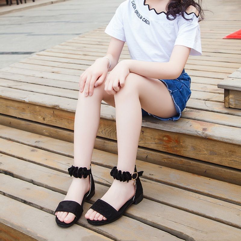 1. The design of one strap makes this children's sandal look simple and elegant.2. The flowers are embellished at the ankles, very pretty and perfect for matching skirts and dresses.3. High quality sole, light, comfortable and non-slip.4. The lacing method of Velcro is very convenient to put on and take off.