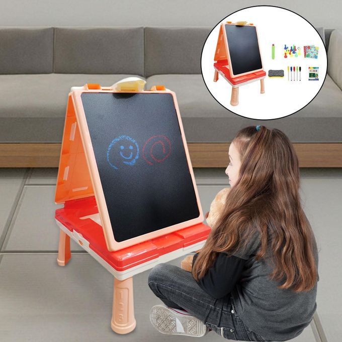 Kids Art Easel;Kids Double Sided Art Easel Board Chalkboard;Children Girl Whiteboard Painting Dry Erase Board;Boy Plastic Standing Rotating Table Easel Pad;Blackboard Drawing Accessories Board Easel Gifts;Table Writing Message Board Toys Art Supplies
