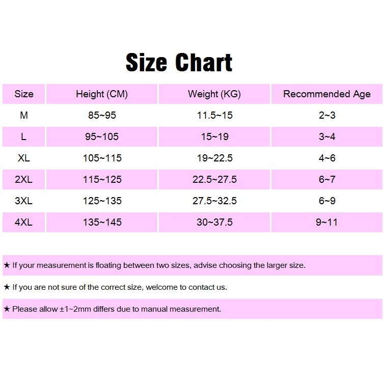 Warm Reminder: 1. If your measurement is floating between two sizes, advise choosing the larger size. (Measurements shown in the size chart refer to item measurements, not body).