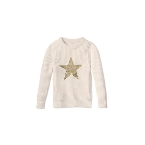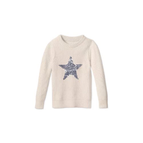 Girls Chunky Knit Sweater With Reversible Sequins - Beige