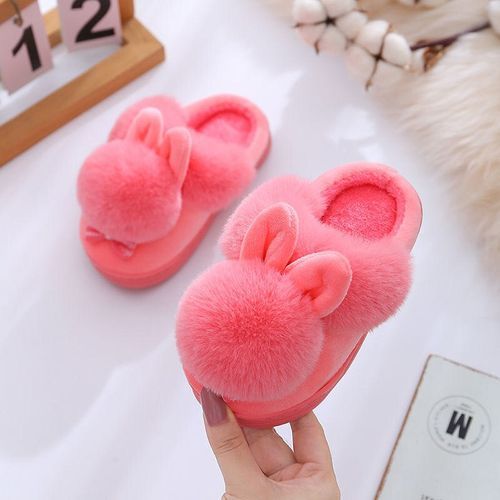 1X Kids Winter Slippers Infant Baby Fur Ball Soft Slippers