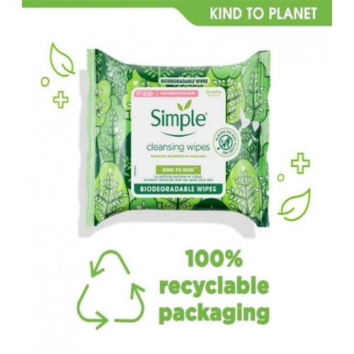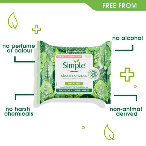 Simple Kind To Skin Biodegradable Cleansing Wipes Gently Cleanse The Skin Of Impurities, Remove Make-Up, and Unclog Pores All In The Convenience Of A Facial Wipe