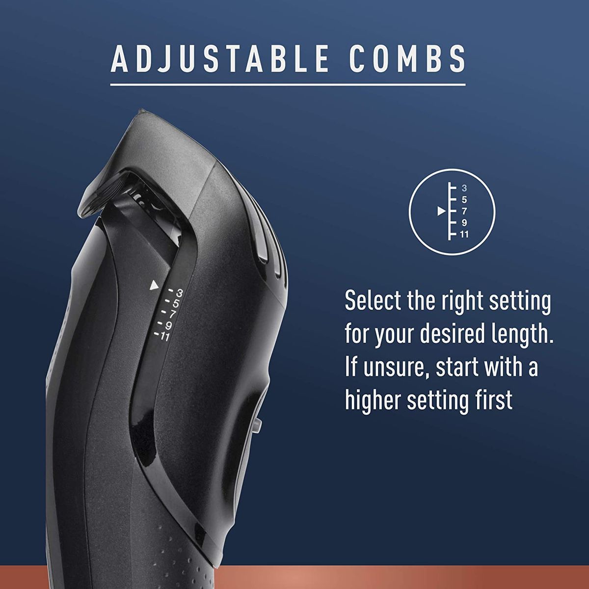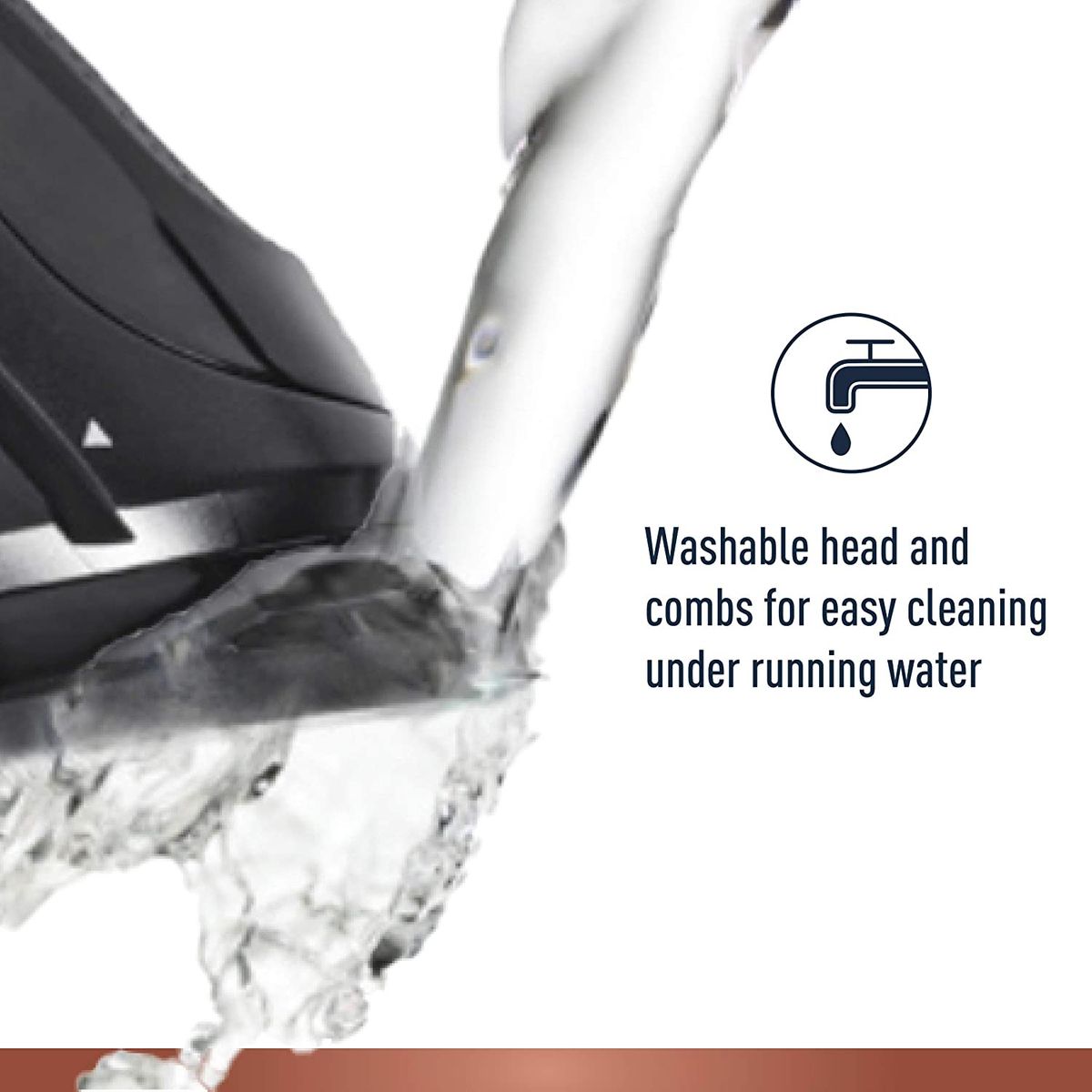 Washable Head & Combs:For easy cleaning under running water. | Adjustable:Choose from 21 length settings (1mm-21mm) to get the exact look you want. The comb locks in securely so you can trim with confidence. | Cordless:Powerful, long-lasting rechargeable battery provides 50 mins of trimming with no performance loss. |