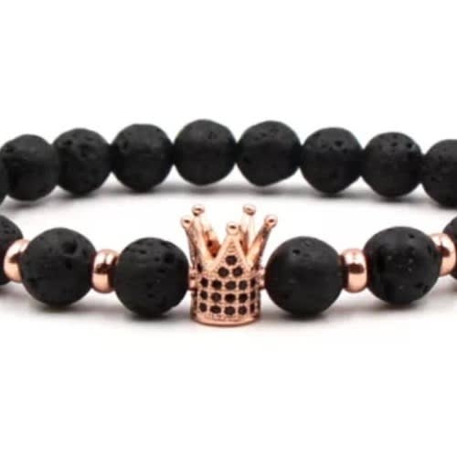 Buy King's Bracelet With Rose Gold Crown - Black in Nigeria