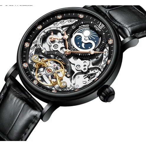 Experience luxury and precision with our Men's Wristwatches Fashion Moon Phase Tourbillon Automatic Mechanical Watches. Combining fashion and functionality, our automatic watches feature a moon phase display and a tourbillon movement, ensuring accuracy and elegance. A must-have for any man who values style and reliability.
