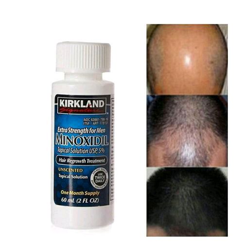 Kirkland Signature Minoxidil Extra Strength Hair Regrowth Treatment is for men who have a general thinning of hair on top of the scalp. However, with this Kirkland Minoxidil Extra Strength for Men, results may occur at 2 months with twice daily usage. For some men, it may take at least 4 months for results to be seen. Continued use is necessary or Hair Loss will begin again. If you do not see hair regrowth in 4 months, stop use. In studies with 5% Minoxidil Extra Strength Topical Solution for Men, hair regrowth has not been shown to last longer than 48 weeks of continuous treatment in large clinical studies. The amount of hair regrowth is different for each person.Promote hair growth with the rich formula of the Kirkland Signature Minoxidil 5% treatment made for men. The active ingredient of this Kirkland extra strength treatment is 5% Minoxidil that nourishes the hair follicle to facilitate the hair growth process. As believed by the makers, this Kirkland hair loss treatment takes about 2 - 4 months time for effective results to start showing. Just 1 ml of the Kirkland Signature Minoxidil 5% treatment has to be applied twice daily to give you the best results possible. Treat thinning hair and balding with this Kirkland hair loss treatment5% Minoxidil Topical Solution3 Months SupplyBest Worldwide Online Reviews on EfficacyWorks for those who don't have beards at allWorks for those with Genetic Baldness