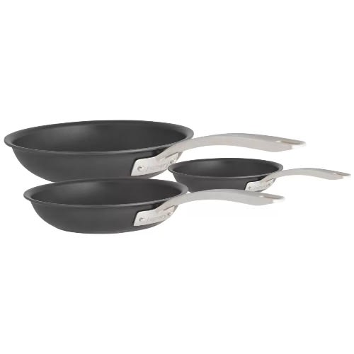 Made with 99.9% pure aluminum, this Henckels Capri Notte Granitium 3pc Aluminum Fry Pan Set features thick, aluminum construction allows it to distribute heat quickly and evenly, minimizing hot spots, resulting in superior browning of your food.The newest-generation Dark Granitium nonstick coating is safe for use with metal utensils and is highly mineral reinforced for enhanced nonstick performance. The set includes 8 & rdquo;, 10 & rdquo; and 12 & rdquo; fry pans.Includes: