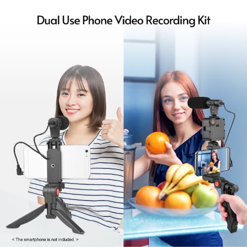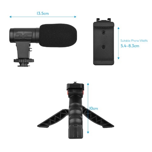 Smartphone Vlog Kit with Microphone The microphone features cardioid wide pickup range and powerful noise canceling technology, plus high quality mic capsule for high quality recording. It supports all smartphones that come with 3.5mm audio input jack.; it also works for Canon Nikon Sony etc. DSLR Cameras, Camcorders, and other cameras that has a 3.5mm port.