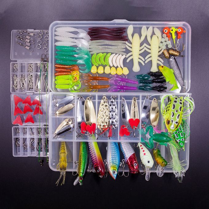 ; kit for freshwater saltwater;Trout Carp Bass baits ; accessories gear stuff box kit; attractants Spoon Worms Crankbait Jigs; Hooks Artificial baits